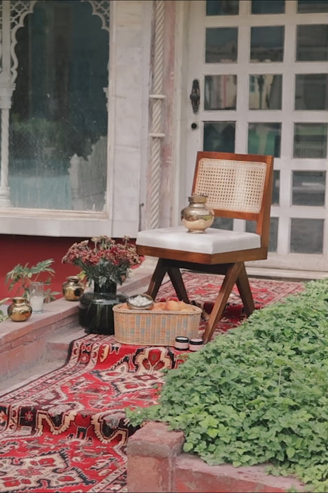 This festive silhouette is cut from cotton net in a refreshing lemon and is detailed with gota and floral embellishments. The look is completed with an organza chatta-pati dupatta with hues of lavender, teal and blush pink with triangular gota finishing and a gold brocade izaar. A piece that is a timeless wardrobe classic.